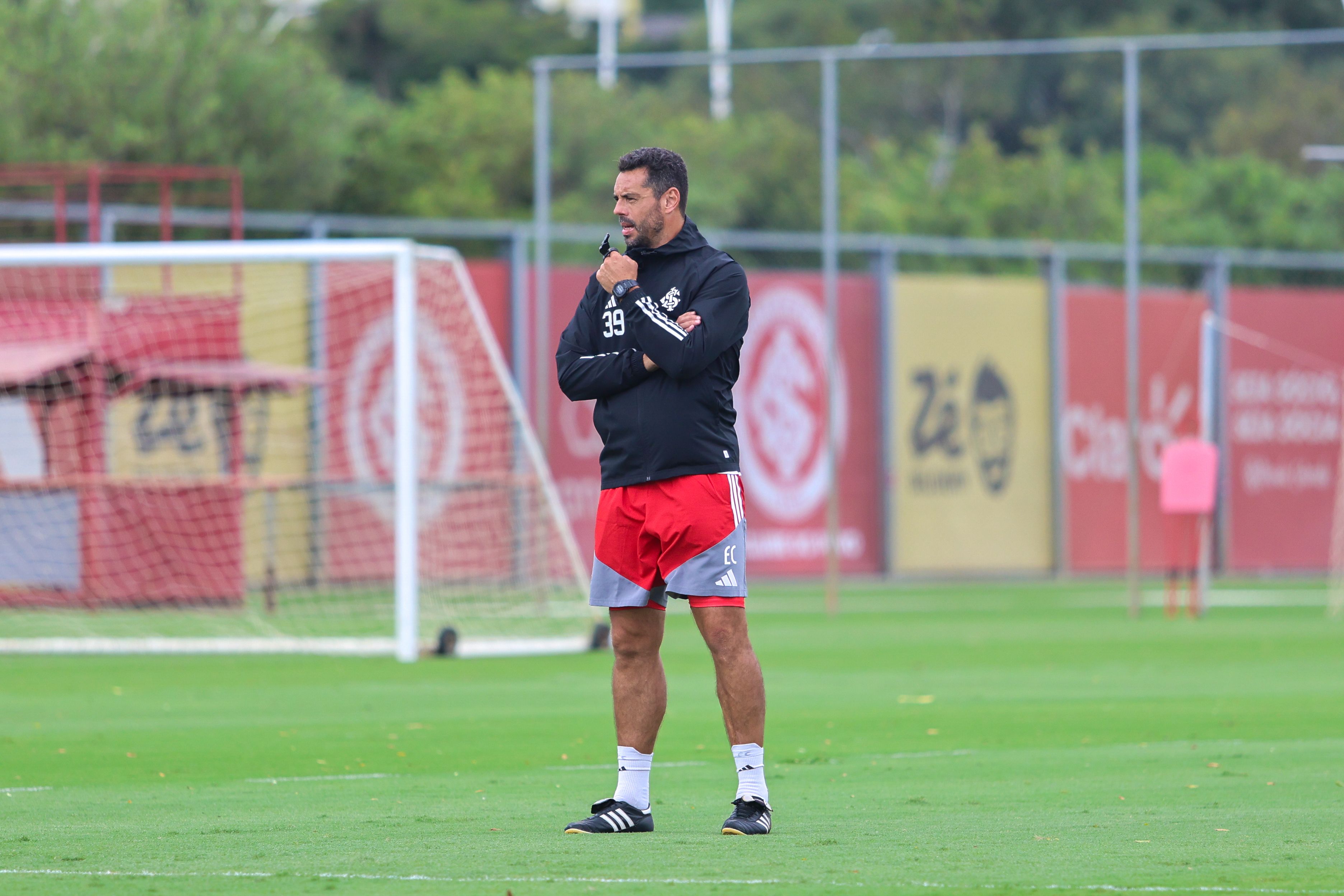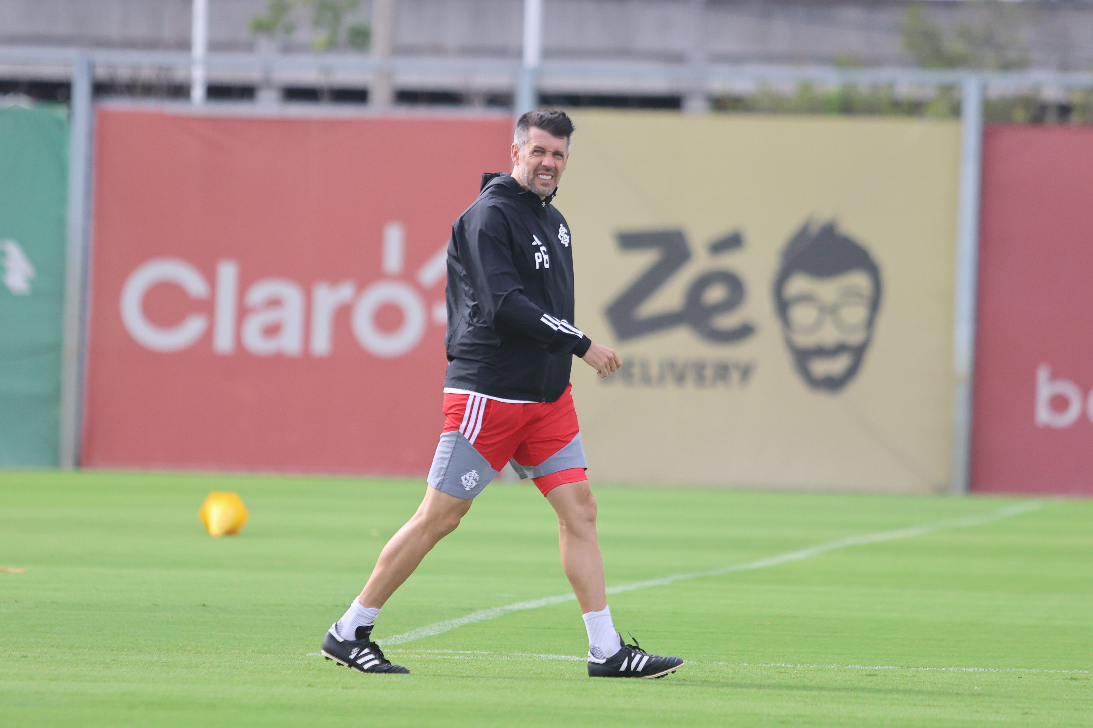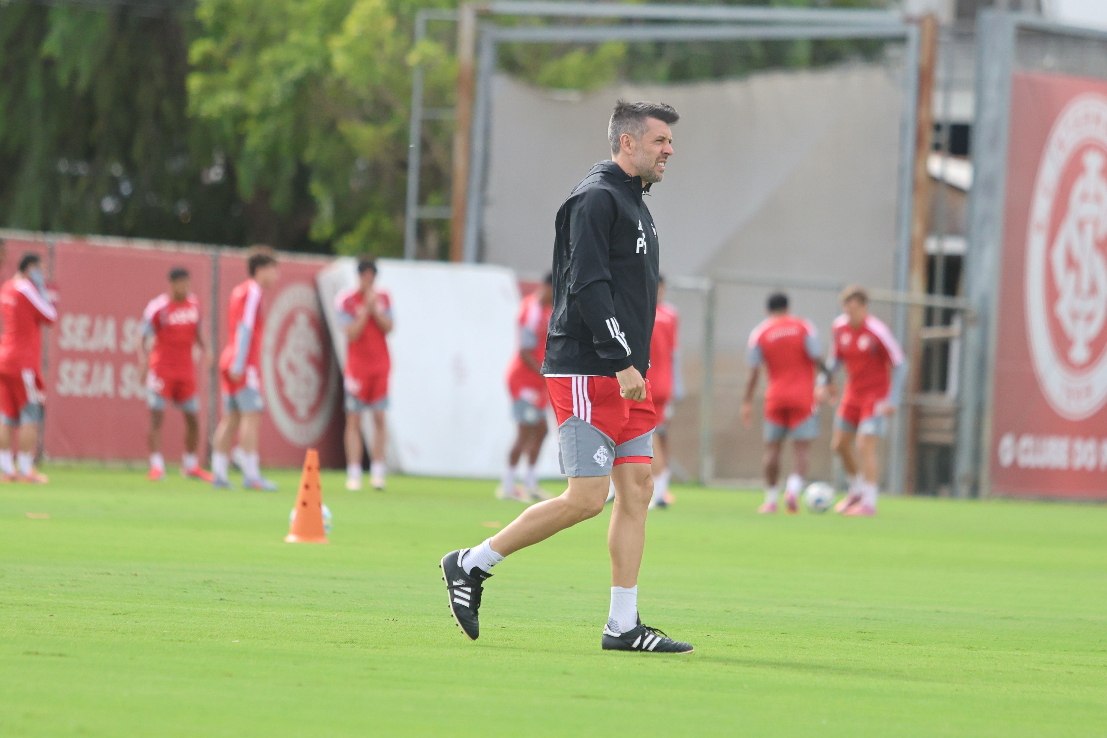 O treinamento iniciou na academia com exercícios de força. Depois, no gramado, a comissão deu continuidade às atividades físicas. O trabalho seguiu com treino de posse de bola e, para fechar a manhã, Pezzolano orientou um tático junto com alguns garotos do Celeiro.